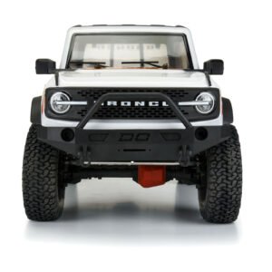 The Bronco is available in 2-configurations: standard 12.3″ wheelbase for the 4-door version, and a shorter 11.4″ wheelbase (PRO356900) for the 2-door. To easily convert your SCX10™ III to this shorter wheelbase, it is recommended to use the Axial® 11.4″ Link set (AXI234016).