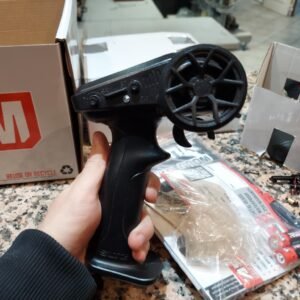 The high-quality Spektrum SLT2 2-channel transmitter is the perfect size for all drivers. It can help you learn control skills safely by limiting the monster truck’s maximum speed to 50% or 75% until you’re ready for it all. Four AA batteries included.