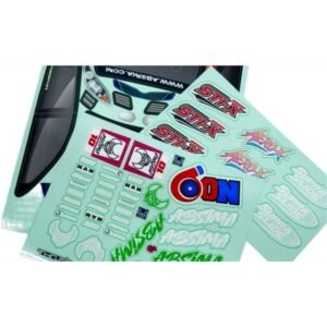 Inclui também uma folha de autocolantes adicional com decalques, acrescentando ainda mais detalhes ao aspeto geral. Inclui ainda um extenso conjunto de autocolantes de patrocinadores para personalização individual. Assim, não deixa nada a desejar no que respeita à personalização visual.