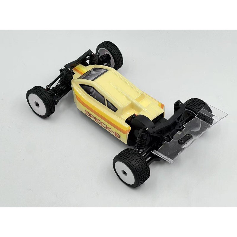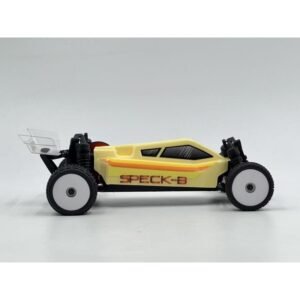 Outro aspeto do Speck-B é a sua capacidade de se transformar naquilo que quiser que ele seja. O variador/recetor incluído pode ser rapidamente convertido num recetor puro para transformar o modelo num modelo sem escovas, sem necessidade de um novo recetor ou emissora. Basta instalar o seu próprio variador e motor, e está pronto para começar. Graças ao design versátil da placa de motor incluída, o modelo pode ser alimentado por qualquer coisa, desde o motor com escovas 030 incluído até um motor com escovas 050 ou um motor sem escovas 1626. A potência é transmitida através de uma unidade de tração com rolamentos de esferas e engrenagens de passo Mod.5. Com toda esta potência disponível, irá certamente precisar de algumas opções de afinação, e foi exatamente isso que lhe fornecemos. Centros de rolamento ajustáveis, distribuição de peso ajustável com pesos de chassis opcionais integrados ou uma escolha da posição do ESC, amortecedores totalmente ajustáveis e um diferencial de engrenagem selado permitem-lhe afinar o veículo a seu gosto.