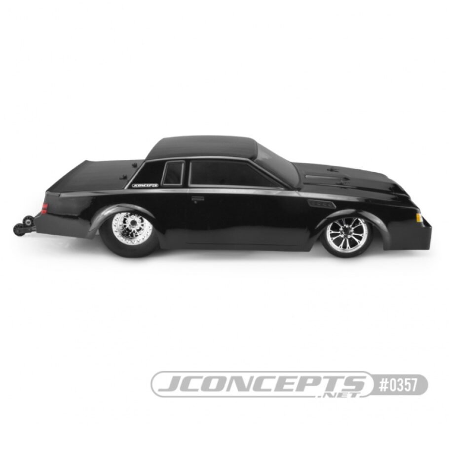 It is not often you catch something “Bad to the Bone” at rest, but the promotional photos of the 1987 Buick Grand National is cooling in a very uncommon way. The American produced, sinister, wedged shaped vehicle is now released to the RC enthusiast to fit the latest Street Eliminator vehicles on the market. The crew in the JConcepts R&D department tackled one of its finest projects to date and together with Chevrolet licensing has produced some exciting muscle.
