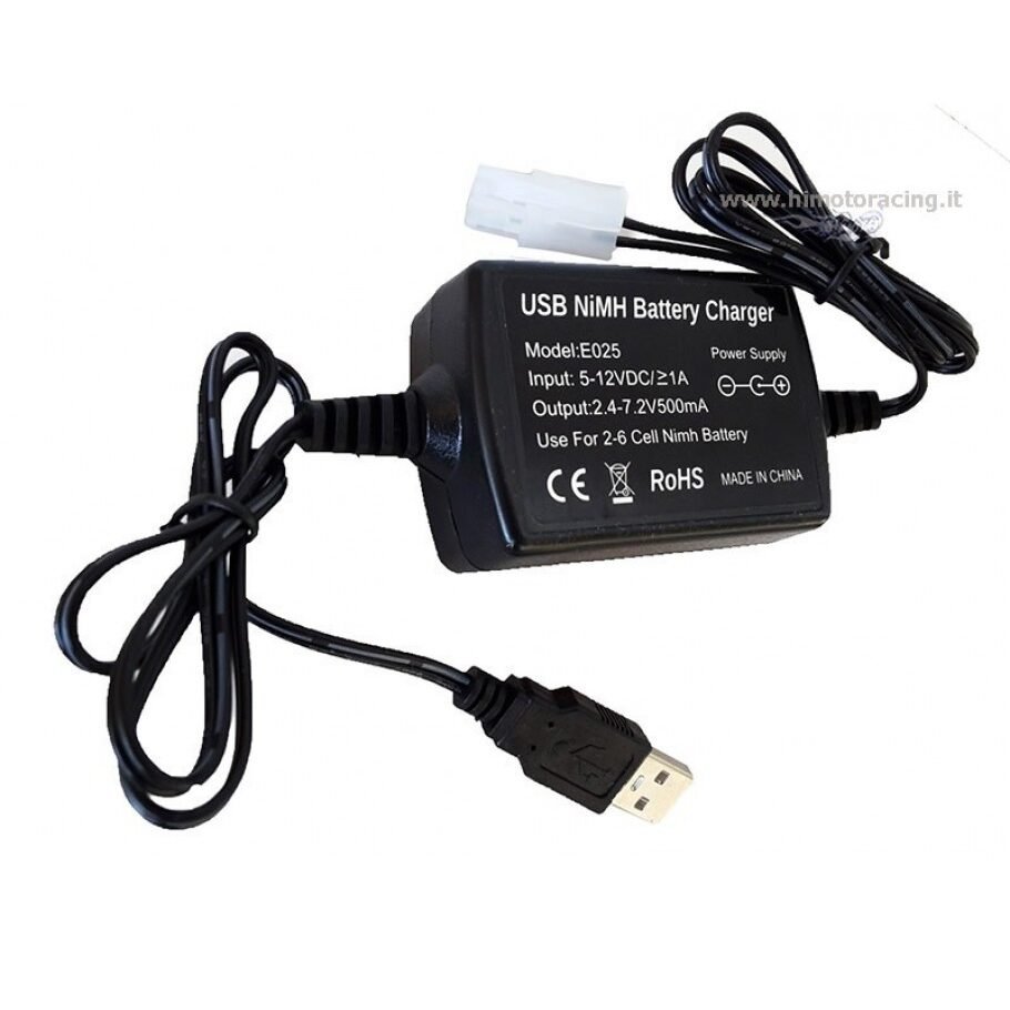 <p>Himoto NiMH Usb Charger with Tamiya 2-6S 500mA NiMH Connector with 3-State Indicator Light. A solid red light indicates charging, a solid green light indicates charging is complete, and alternating red and green flashing indicates the battery is not connected or the connection is incorrect.