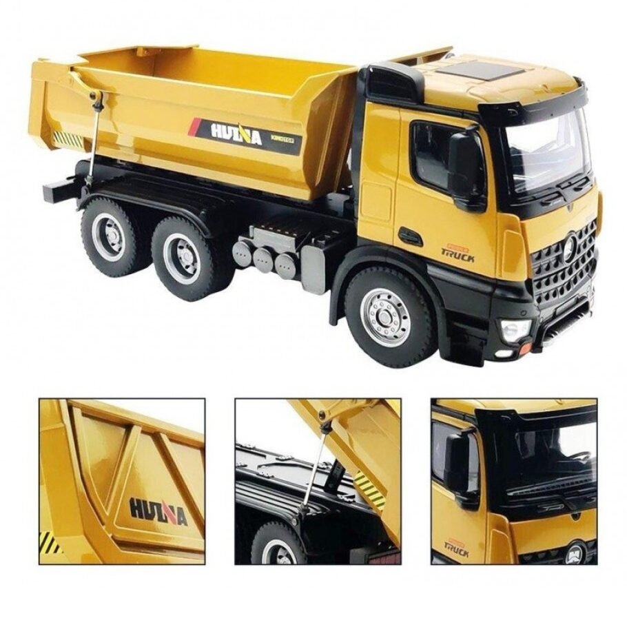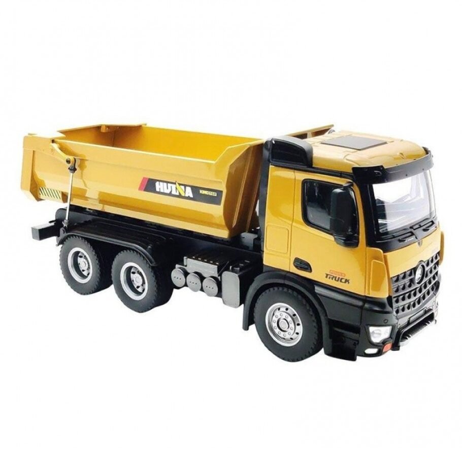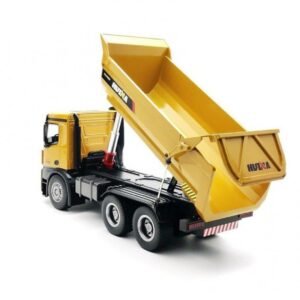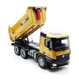 The Huina 1582 Dump truck is the most famous and best electric RC construction dump truck. This is a model or Toy version of the Mercedes-Benz Arocs Dump truck. It is best when matched with huina RC construction vehicles. It can carry and unload about 4kg of sand. This dump truck does have a light and sound module installed on average it can last for about 45 minutes when its battery is fully charged. It can be operated from 30 meters away from the remote control. This is an upgraded model of the huina 1573 Dump truck. In comparison to the huina 1573 dump truck, the huina 1582 is more stronger and heavier than the huina 1573.