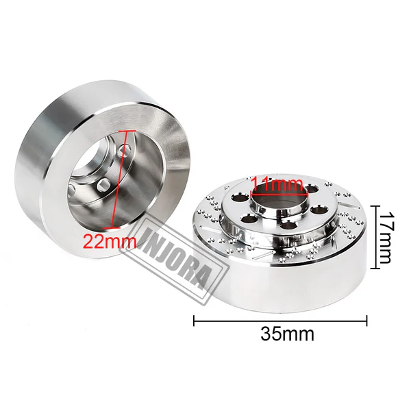 INJORA 2PCS Brass Silver Anodized Brake Disc Weights for 1.9 2.2 inch Wheel TRX4 TRX6 Axial SCX10 90046 AXI03007