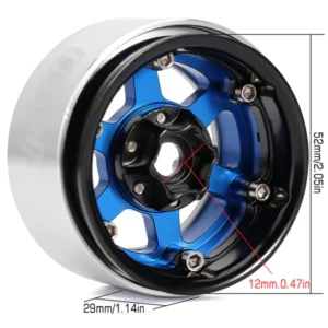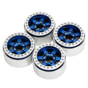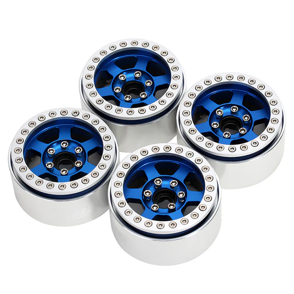 INJORA 4PCS 1.9″ 6-Spokes CNC Aluminum Beadlock Wheel Rims for 1/10 RC Crawler (W1947)(Blue)