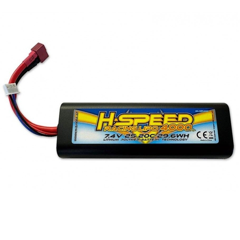 LiPo 4000mAh 7.4V 29.6Wh Racing Akku H-SPEED mit T-Stecker (134x24x46mm)