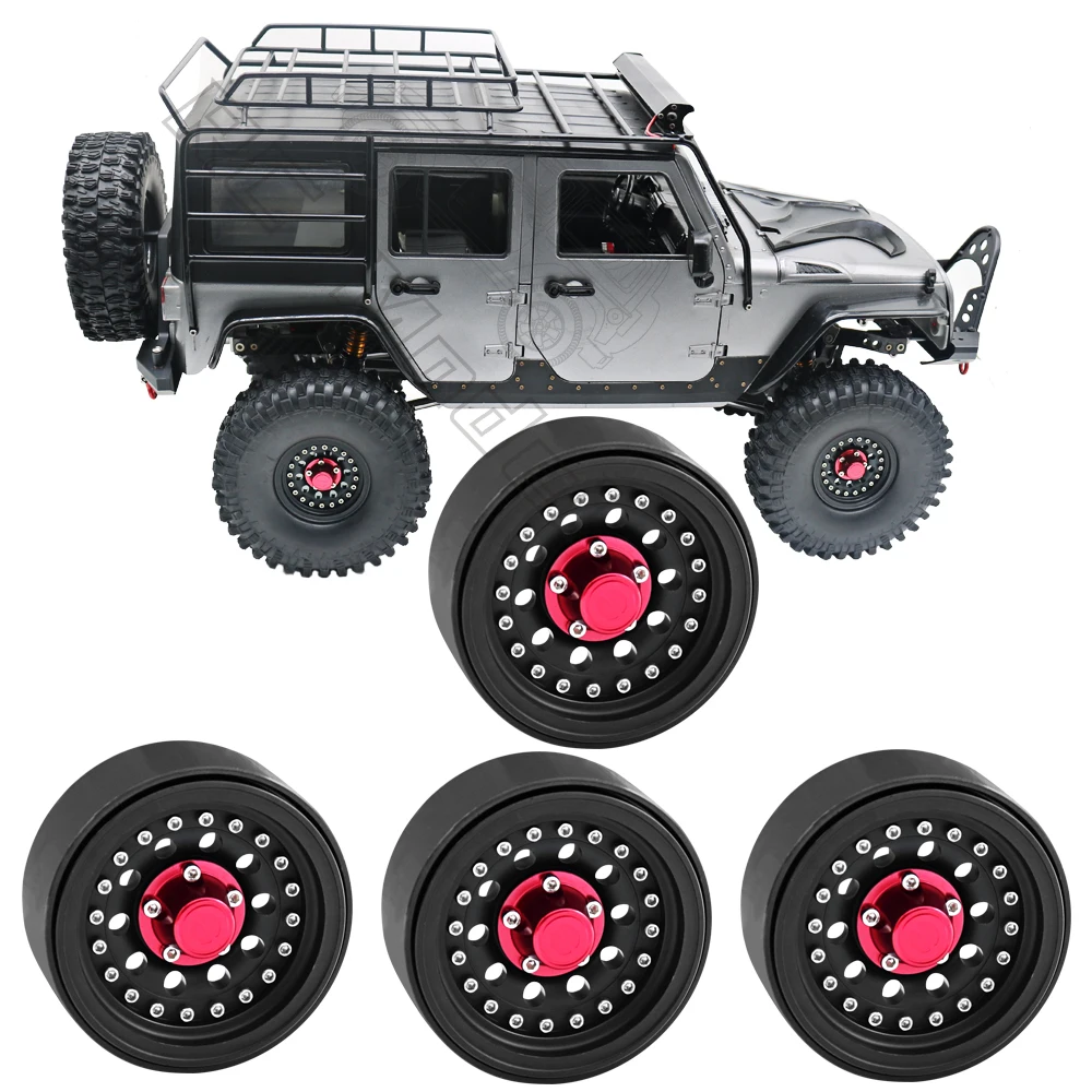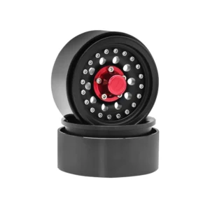Metal Beadlock Wheels 1.9″ for 1/10 RC Crawler – Black with Red Hub (Set of 4)
