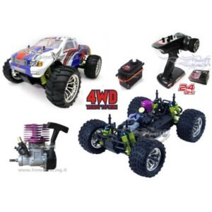 <p>MONSTER TRUCK 1:10 OFF ROAD complete with Radio 2.4, RTR ready to race, the best off road that prevails with real power among those in its 1:10 scale, overcomes the most difficult obstacles and paths with dexterity, agility and power off-road vehicle, equipped with two spring-loaded bumpers that allow it to significantly avoid breakages in collisions. all bearings equipped with 8 long-stroke oil shock absorbers with aluminum head that allow elasticity in movements even with all the weight on one wheel, 2.4Ghz receiver, one-speed gearbox and 2 6kg servos, comes with bodywork as per photo alreadycut and painted including adhesive kit. Very importantly, it offers countless possibilities for trim adjustments (toe, camber, camber recovery, ground clearance). ALL SPARE PARTS ARE AVAILABLE</p>