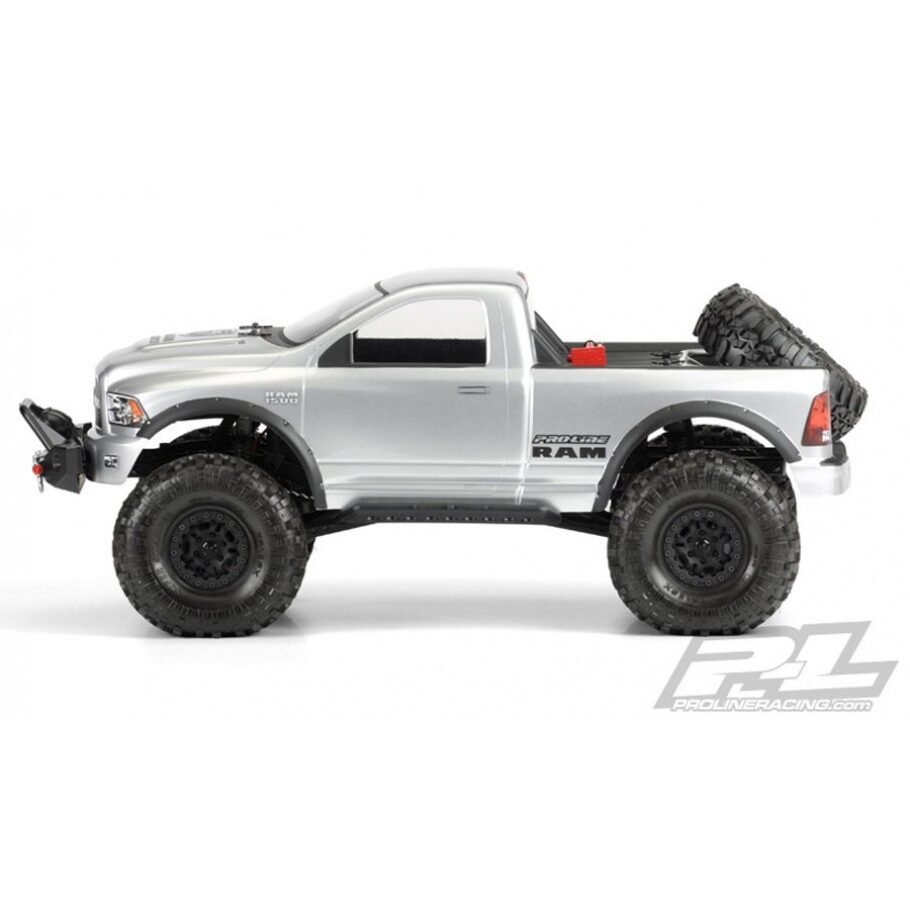 Pro-Line has something new for all of the scale rock crawling fans: a RAM 1500 body! This customized RAM body is perfect for giving your rock crawler a unique look amongst the crowd of Jeeps and Fords. The RAM 1500 body has an area in the bed made specifically for a spare tire and also features customized fender flares similar to ones found on full scale trucks. This licensed body has bold RAM 1500 styling that is a must have for your 1:10 rock crawler. Order your own and start customizing it today!