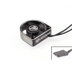 The RUDDOG 30mm Aluminium HV High Speed Cooling Fan was especially developed for the needs of RC car racing. Designed in Germany, the aluminium fan features a uniquie design, which not only looks great, but also saves spaces under your body. The high-speed fan is suitable for LiHV batteries and can be used up to 8.7V. It has a 200mm long black wire with a laser marked JR style receiver plug.