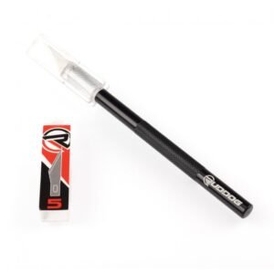 A hobby knife is an essential tool for every RC toolbox. The RUDDOG Hobby Knife offers an affordable alternative in a practical pencil-style format. The black aluminum handle features the distinctive RUDDOG logo and provides a comfortable grip. The included plastic protective cap ensures safety during transportation or when not in use. The package comes with 5 replacement blades in size #11, allowing for quick and easy blade changes. Additional blades are available in a convenient 10-pack (RP-0528).