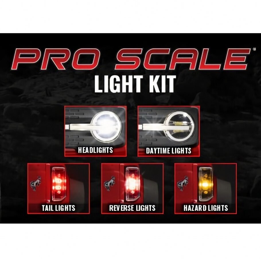 Add scale lighting to your 1/18 scale TRX-4M Bronco for an extra layer of fun and good looks. The Pro Scale Lighting Kit adds working headlights, tail lights, brake lights, and hazard lights that respond precisely to your inputs. Installation is quick and easy because the programming is already built into the ECM-2.5™. Just install the lights in the body and plug a single wire—that’s all there is to it! Pro Scale lights are built to handle all weather conditions with fully waterproof construction.