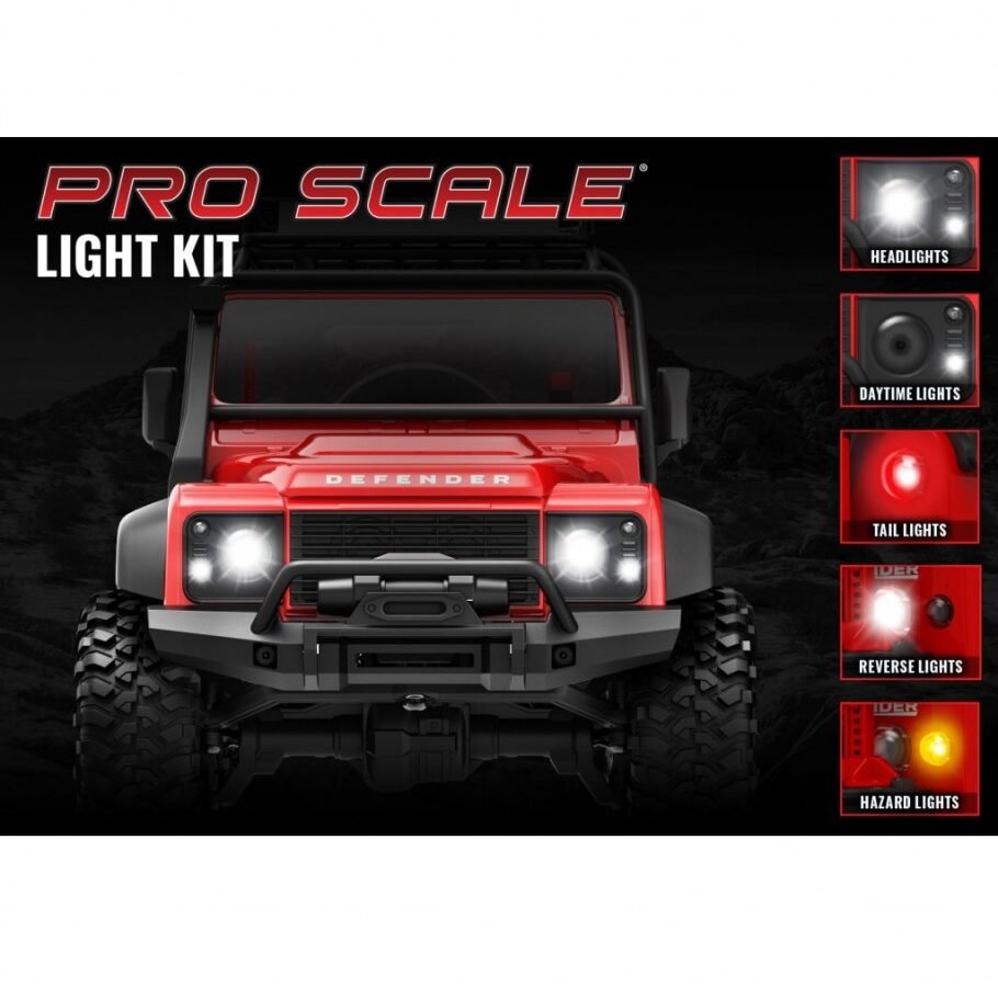 Add scale lighting to your 1/18 scale TRX-4M Defender for an extra layer of fun and good looks. The Pro Scale Lighting Kit adds working headlights, tail lights, brake lights, and hazard lights that respond precisely to your inputs. Installation is quick and easy because the programming is already built into the ECM-2.5™. Just install the lights in the body and plug a single wire—that’s all there is to it! Pro Scale lights are built to handle all weather conditions with fully waterproof construction.